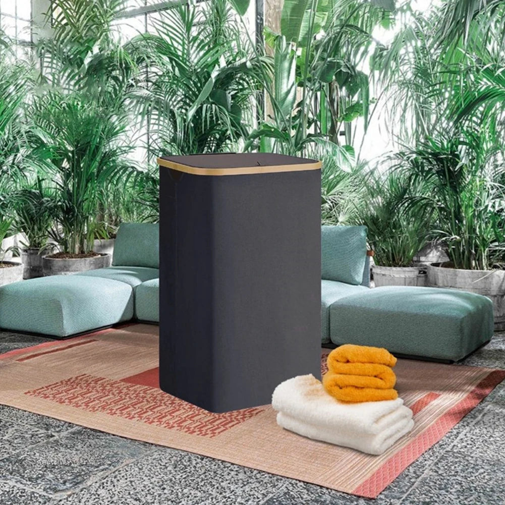 100L Foldable Laundry Hamper Basket with Bamboo Handle And Lid Eco-Friendly Removable Liner for Bedroom Bathroom Storage