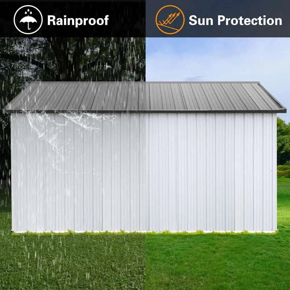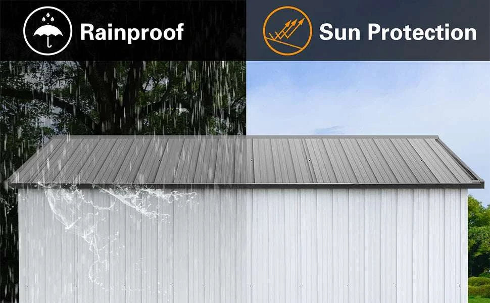 • Sloped Roof: This big sheds & outdoor storage with a sloped gable roof design effectively prevents water and snow accumulation and facilitates longer service life. Also provides more support and ensures stability