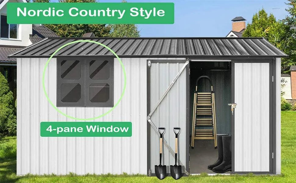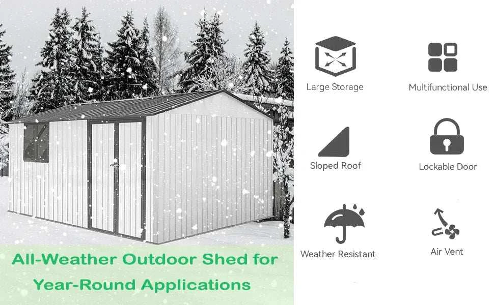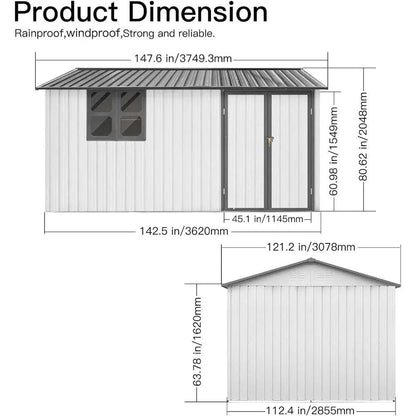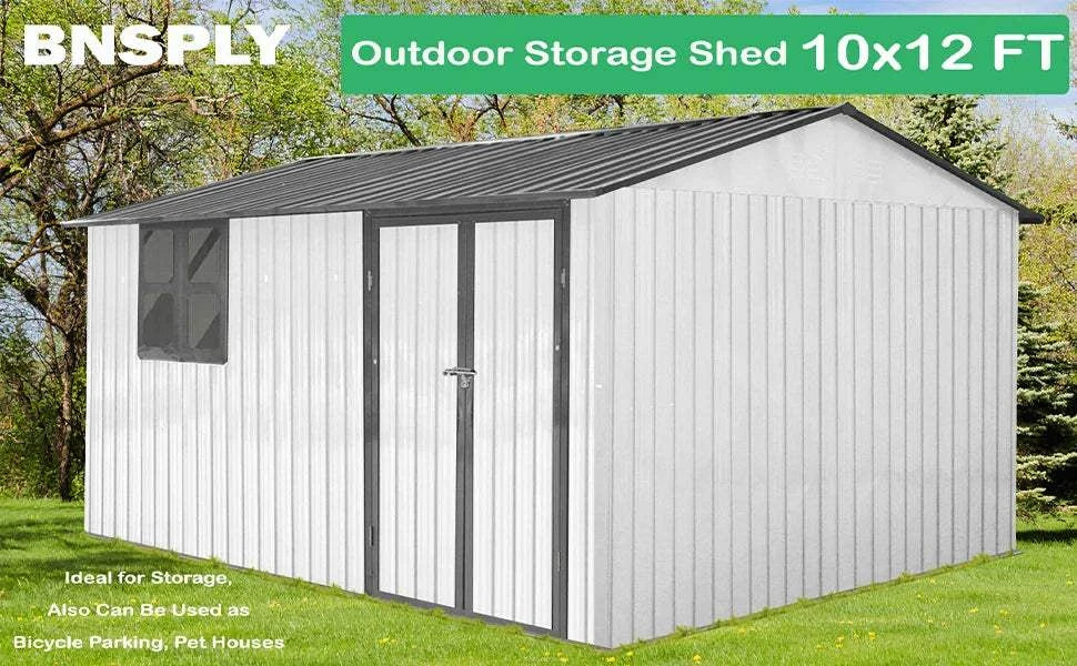 10x12 FT Metal Shed large with Window, Lockable Doors & Air Vents