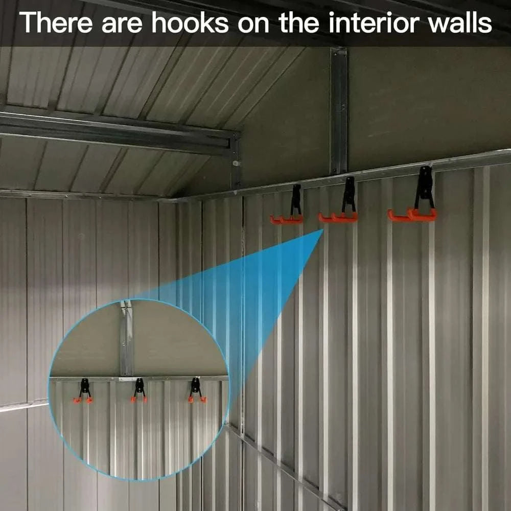 • Durable Construction & Spacious Interior: The outdoor shed 10x12 is made with steel, highly resistant to corrosion, weather resistance and UV protection. The thick wall panels provide adequate support