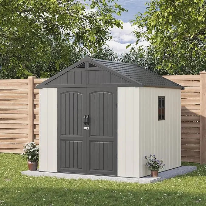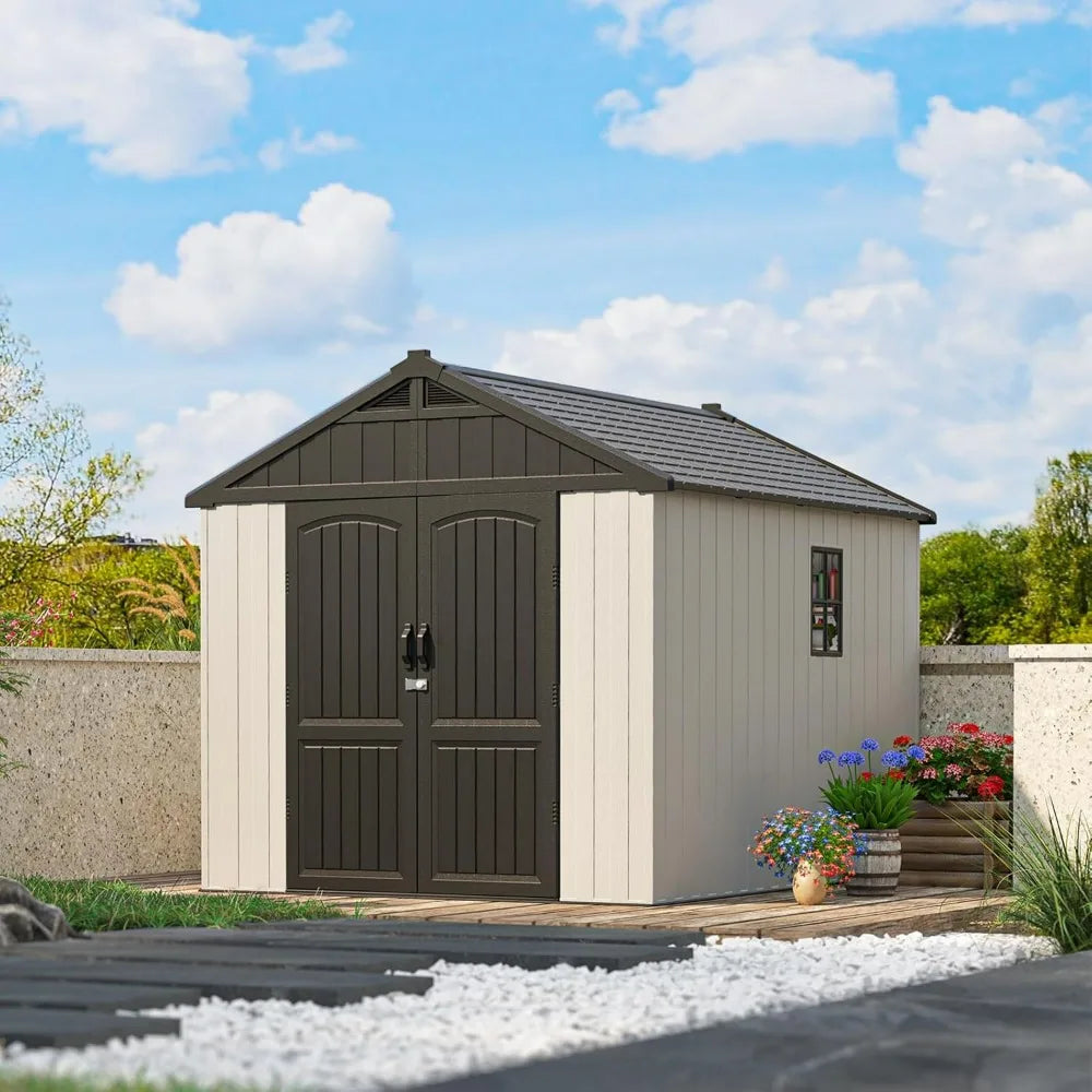 8x10 FT Storage Shed Resin with Floor, Window & Lockable Door