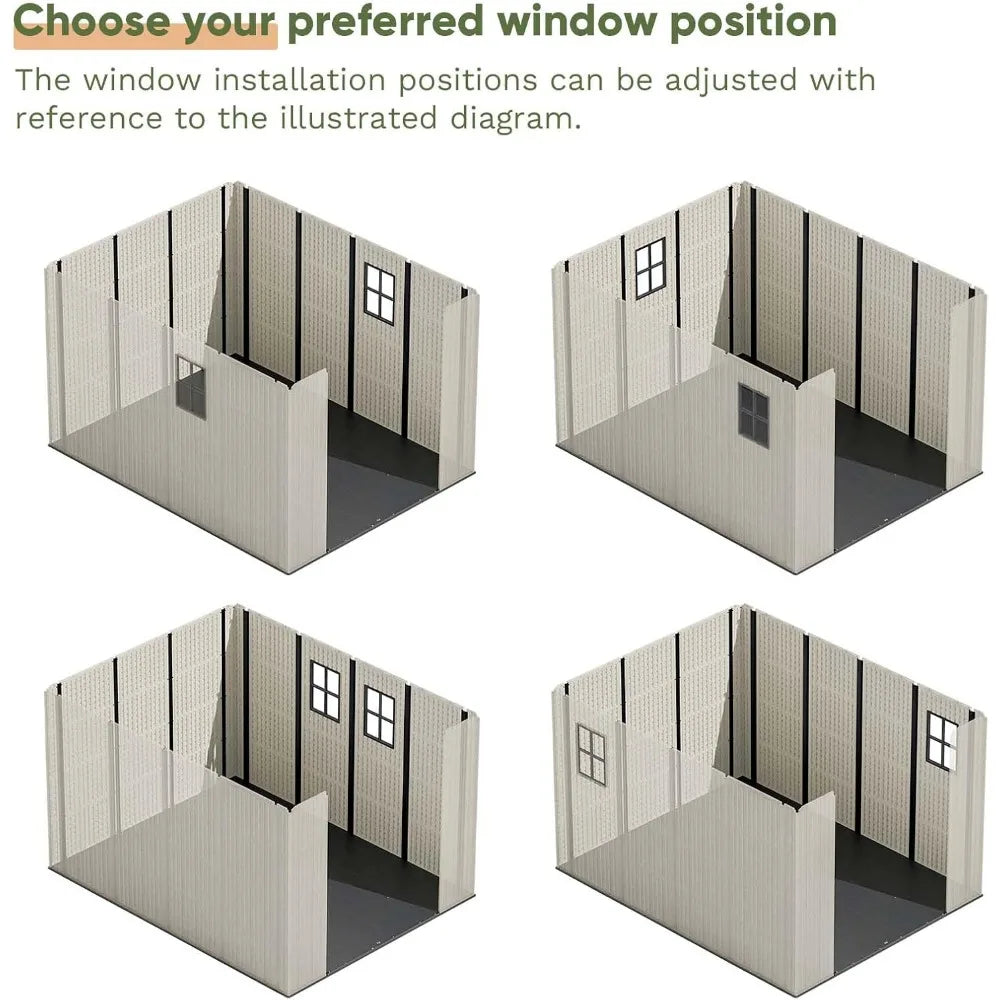 Window designLets in natural light, reducing the need for extra lighting;Provides a pleasant view;Offers added security with a view of the 8x10 FT Storage Shed contents |
