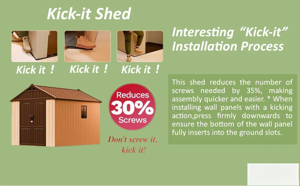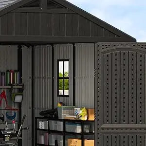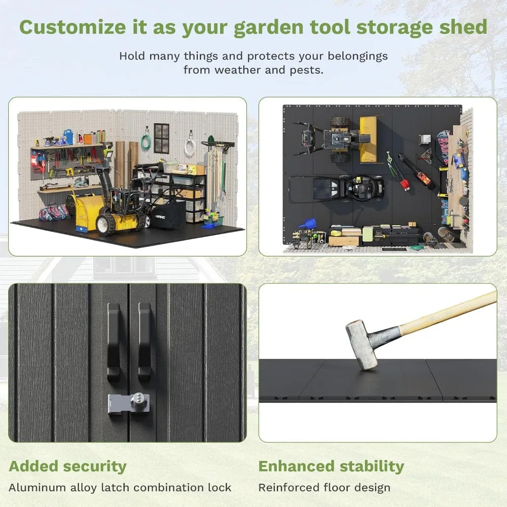 Plastic Floor Base Provides High StabilityThe plastic floor base is sturdy and reliable, providing a safe place to store all of your outdoor tools and equipment. It adds an extra layer of protection against water damage and moisture, ensuring that your belongings remain safe and dry. 8x10 FT Storage Shed |
