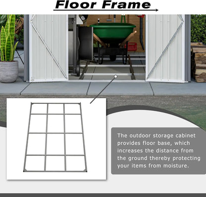 8x12 FT Metal Shed with Lockable Doors, Floor & Vents