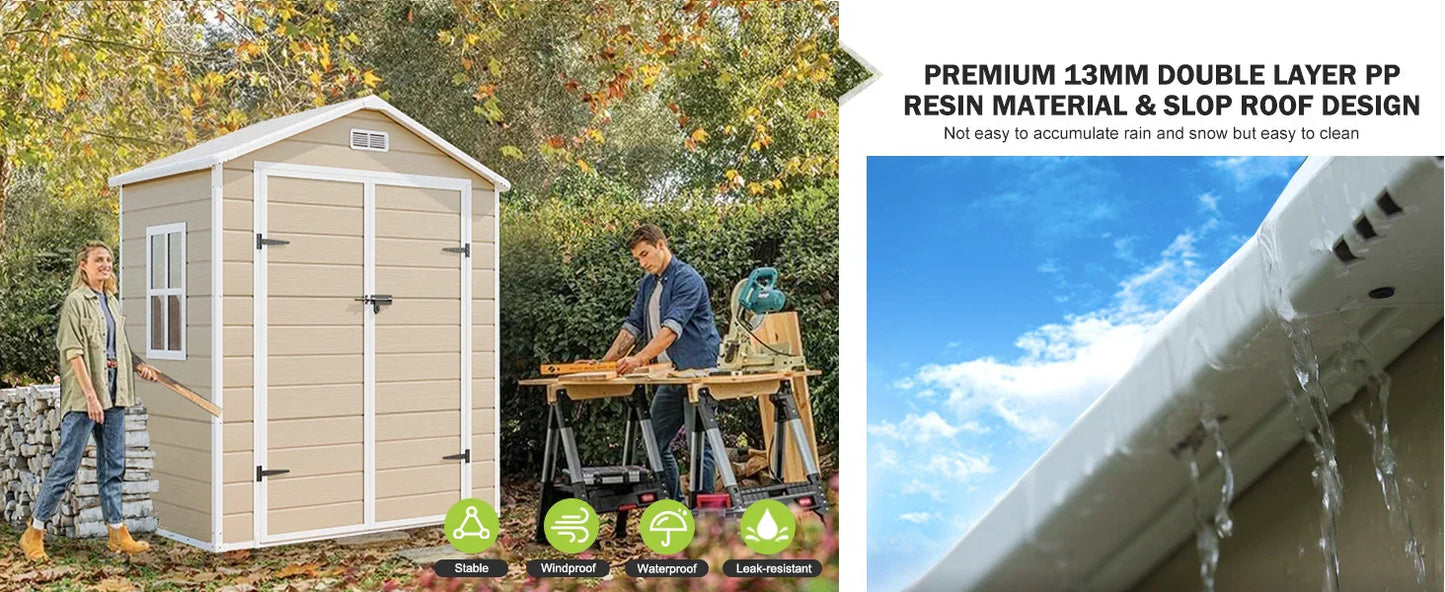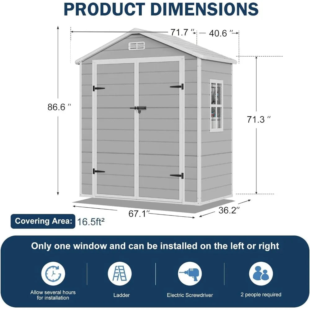 6x3 Outside Resin Storage Shed – Waterproof Tool Shed with Floor & Lockable Doors