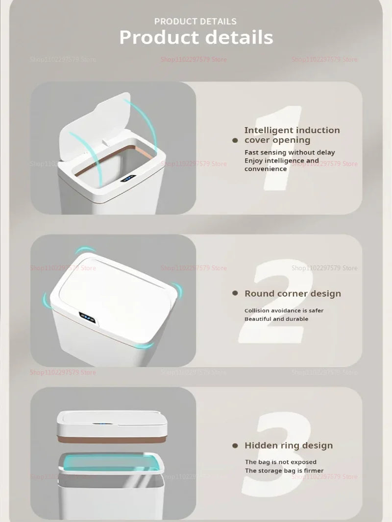 Constructed from durable, high-quality PP material, this trash can is built for longevity and easy maintenance. The IPX5 waterproof rating ensures protection against splashes and spills, making it suitable for humid environments like bathrooms and kitchens without worry. Whether in busy households, office spaces, or communal areas, this automatic trash bin offers a reliable solution.